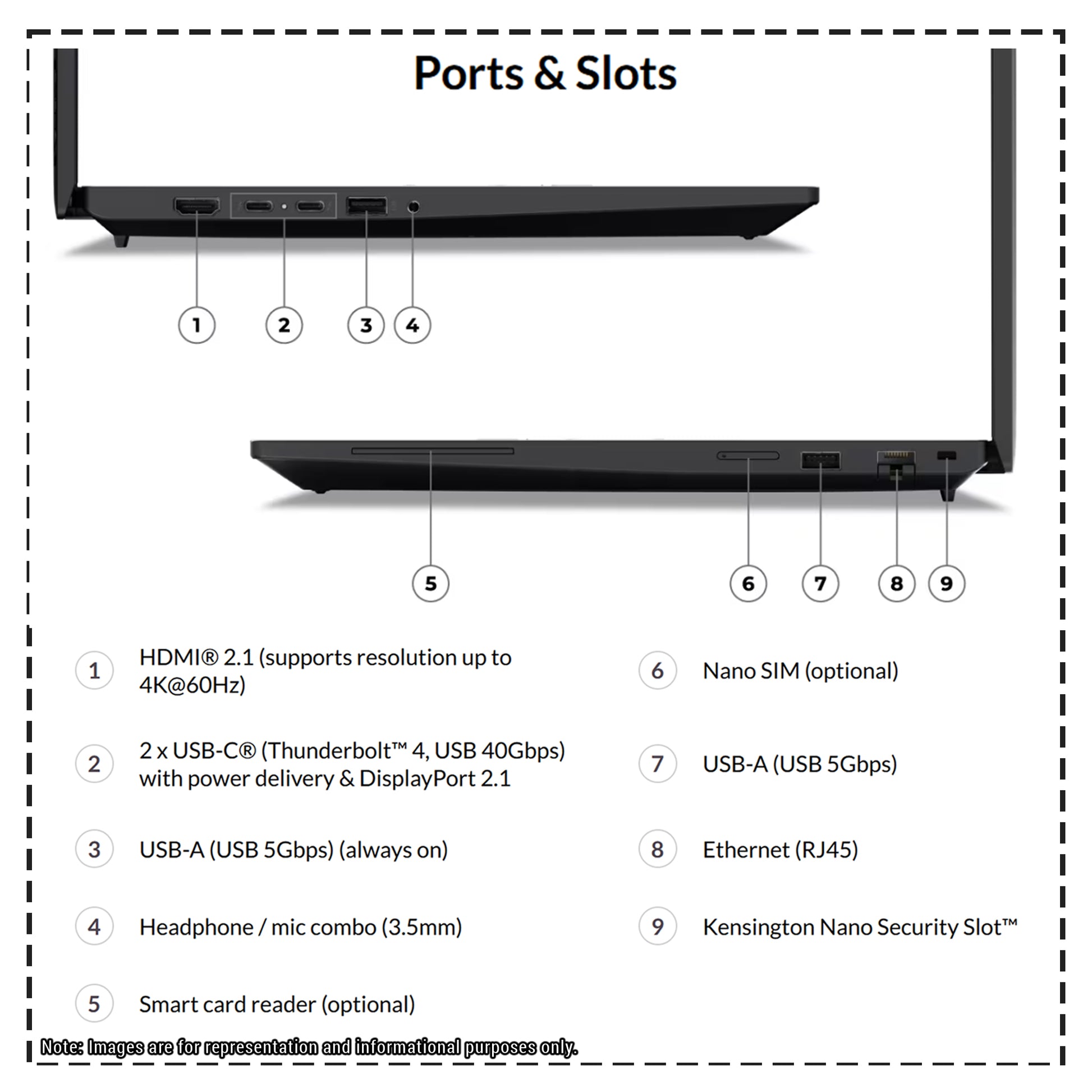 Equip yourself with a full suite of ports for everyday needs: USB ports for your peripherals, HDMI for external displays, and a memory card slot to transfer photos or files. Plus, wireless connectivity ensures you're always ready to connect.