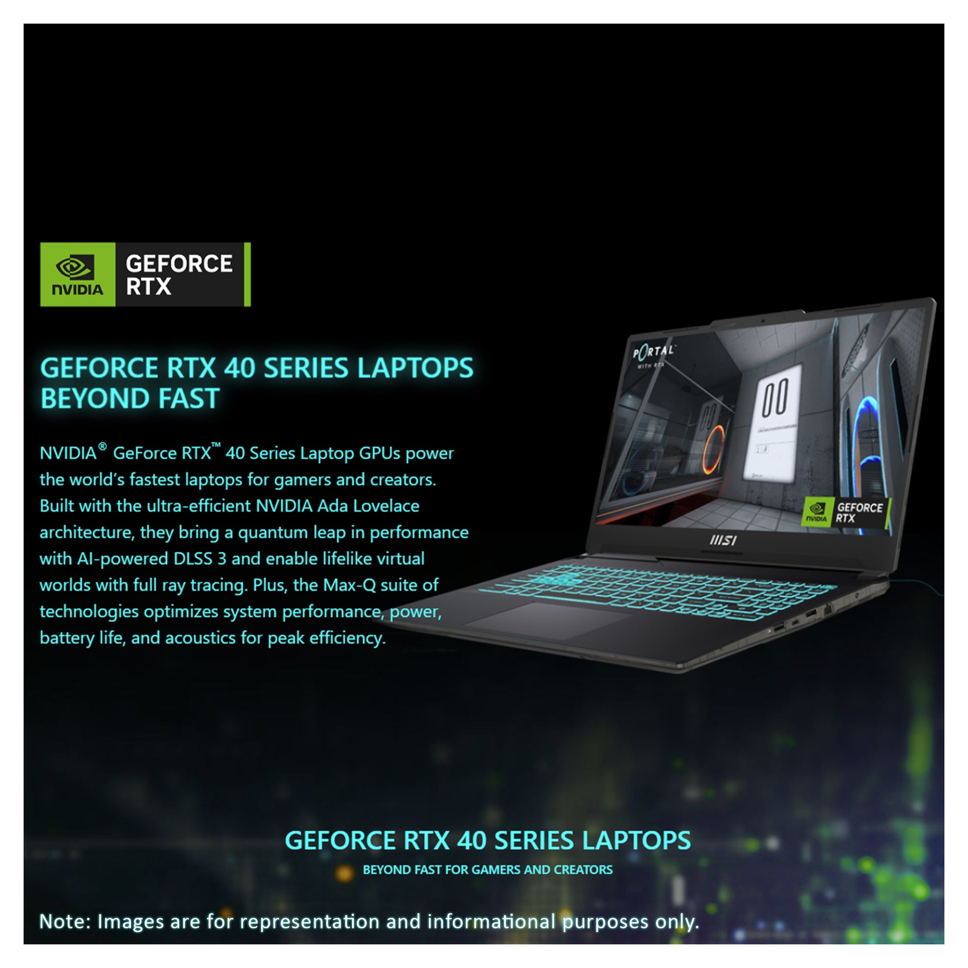 NVIDIA® GeForce RTX™ 40 Series Laptop GPUs power the world’s fastest laptops for gamers and creators. Built with the ultra-efficient NVIDIA Ada Lovelace architecture, they bring a quantum leap in performance with AI-powered DLSS 3 and enable lifelike virtual worlds with full ray tracing. Plus, the Max-Q suite of technologies optimizes system performance, power, battery life, and acoustics for peak efficiency.