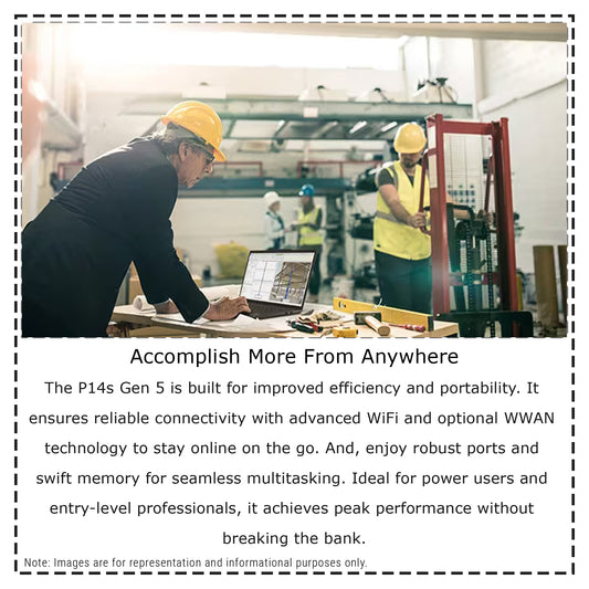 Lenovo ThinkPad P14s Gen 5 Mobile Workstation (Used-Good) Accomplish More From Anywhere The P14s Gen 5 is built for improved efficiency and portability. It ensures reliable connectivity with advanced WiFi and optional WWAN technology to stay online on the go. And, enjoy robust ports and swift memory for seamless multitasking. Ideal for power users and entry-level professionals, it achieves peak performance without breaking the bank....Regular price $905.00Regular priceUnit price / perSale price $905.00 -