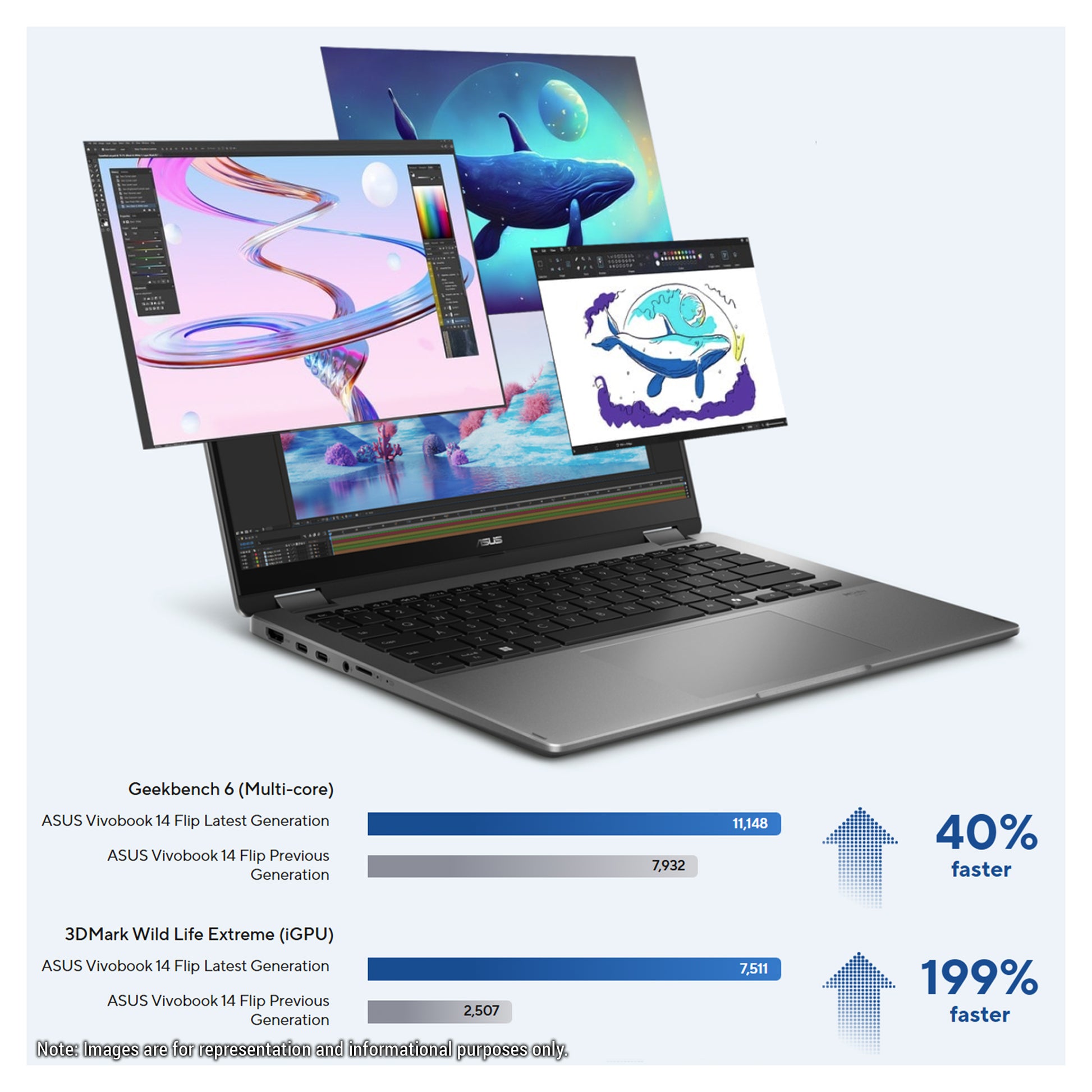ASUS Vivobook Flip Copilot+ Laptop, Ultra 7-256V, 14" WUXGA (1920 x 1200) OLED Touchscreen, Arc Graphics, Backlit Chiclet Keyboard