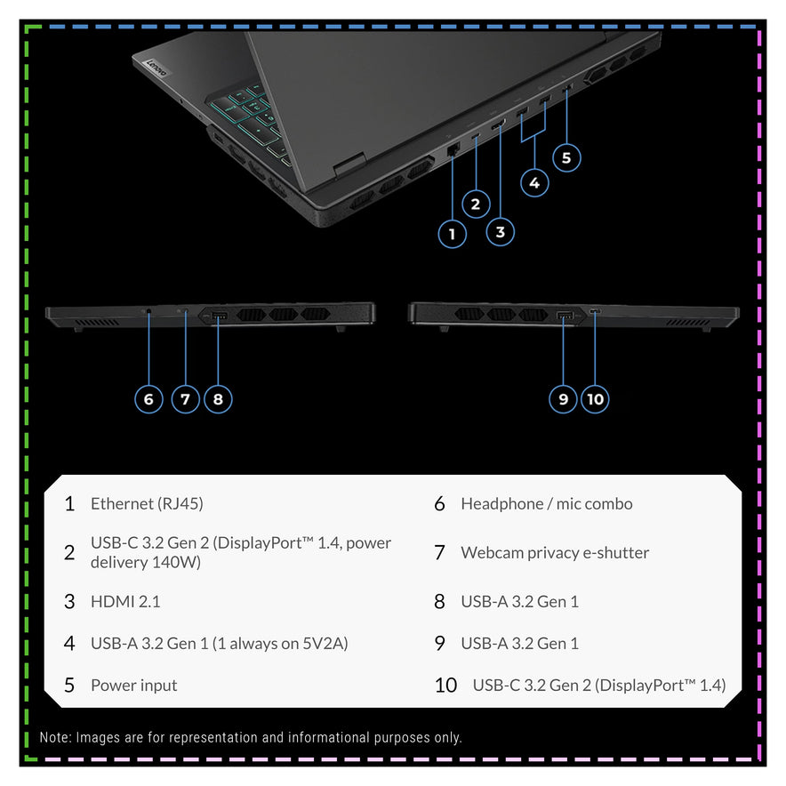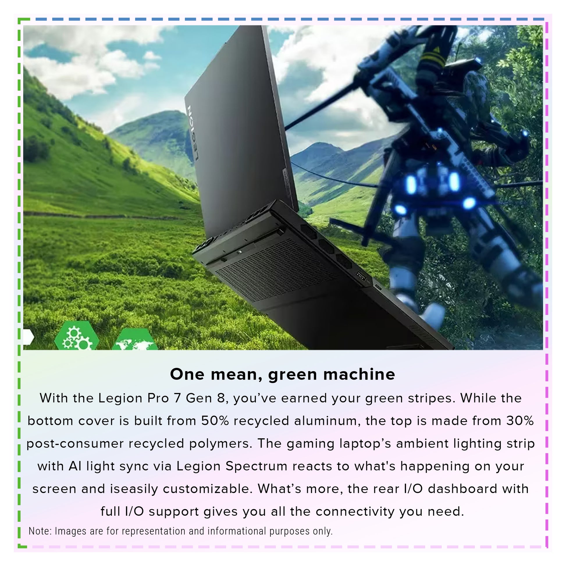 The proprietary Lenovo PureSight 16 WQXGA 16:10 Gaming Display with high variable refresh rates, alongside a Legion TrueStrike keyboard with per-key RGB powered by Lenovo Spectrum, ensures that you are fully immersed in your game. Now with an improved sustainable design forged from recycled aluminum and magnesium, cast in a fittingly-styled Eclipse Black, the Legion Pro 7i is the next generation of performance, power, and design.
