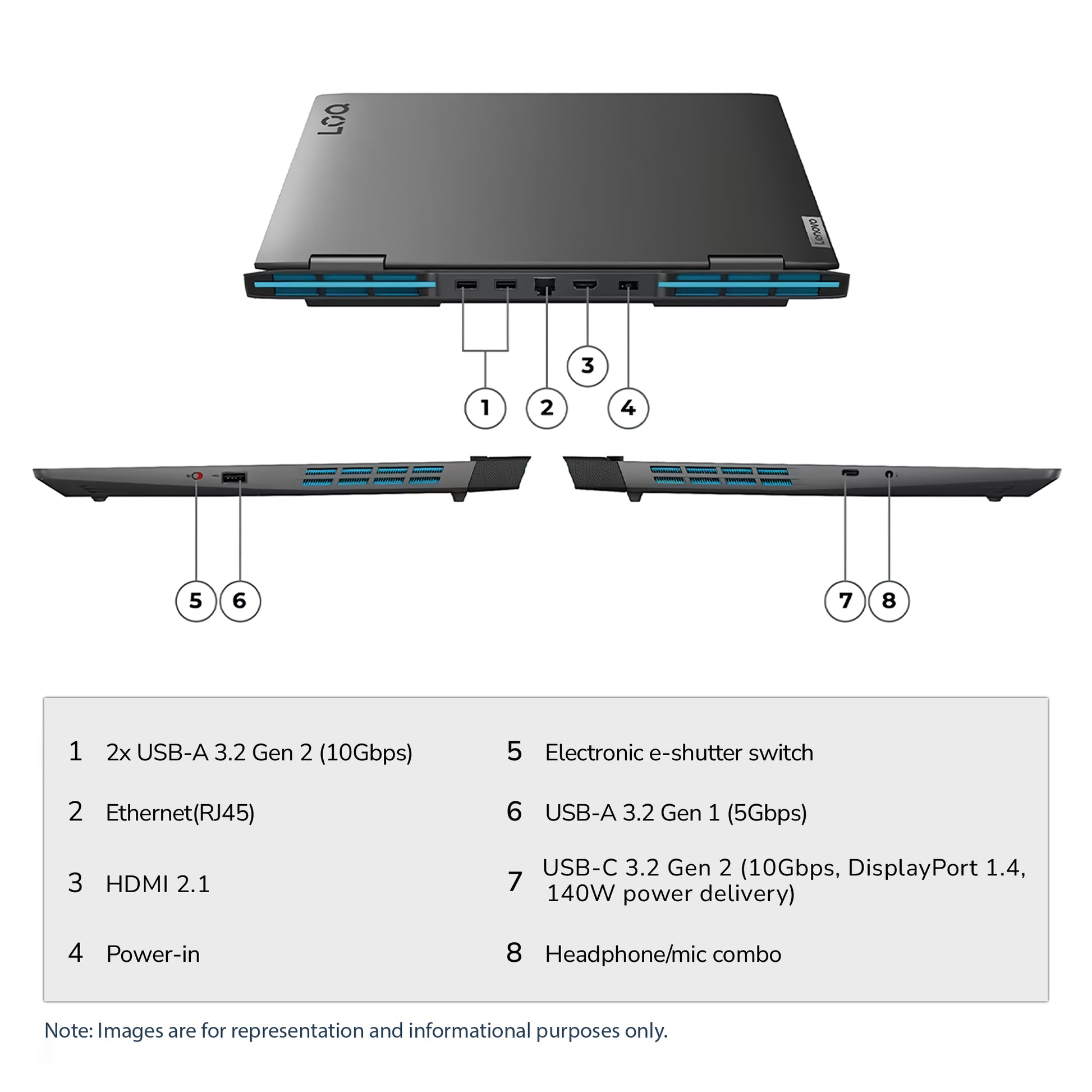 7. USB-C 3.2 Gen 2 (10Gbps, DisplayPort 1.4, 140W power delivery)