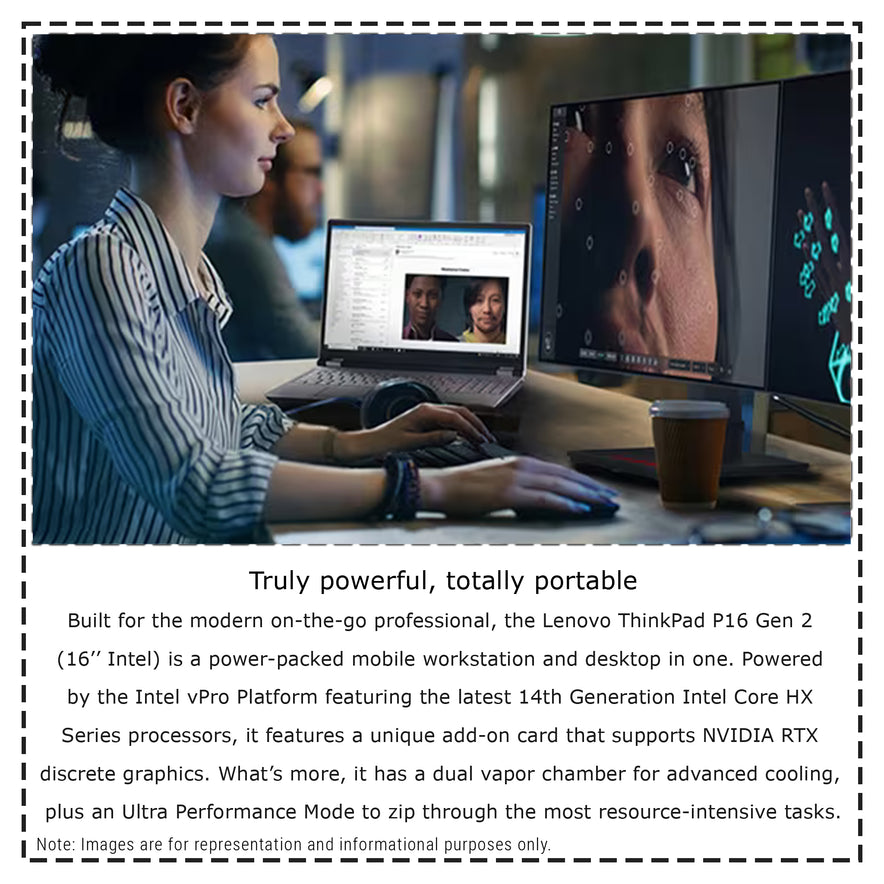 For those that demand extra power, the ThinkPad P16 Gen 2 (16″ Intel) supports blazing-fast memory and high-performance storage. With power supply support of up to 230W, this mobile workstation can be configured to meet any need. And for the ultimate in connectivity, it has multiple ports for all your peripherals, as well as a range of wireless options to keep you in the loop wherever work takes you.