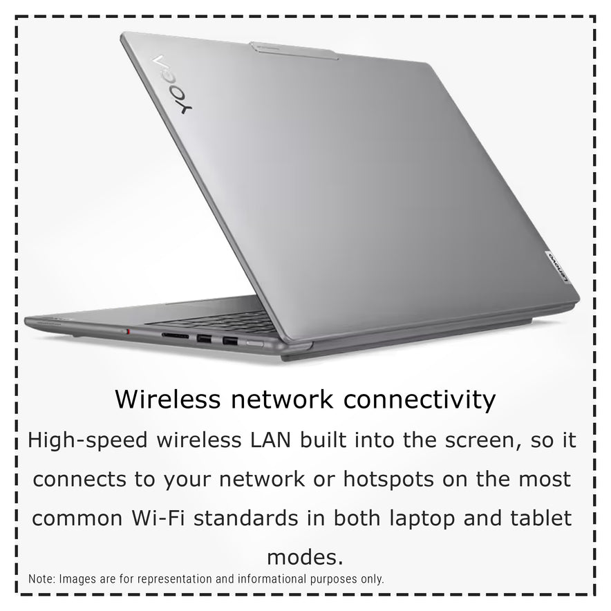 High-speed wireless LAN built into the screen, so it connects to your network or hotspots on the most common Wi-Fi standards in both laptop and tablet modes.