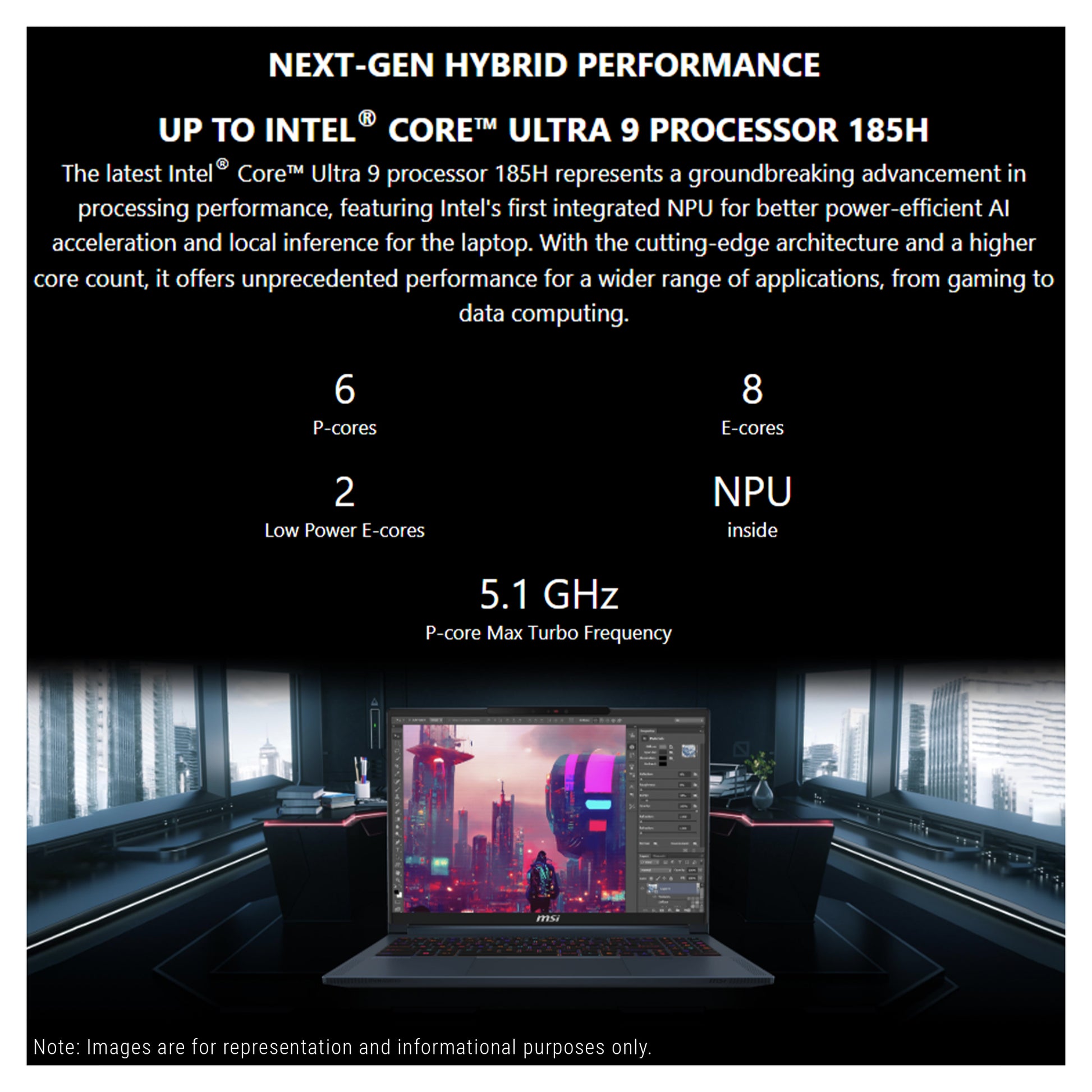 MSI Stealth 16 AI Gaming Laptop, Ultra 9-185H,16" QHD+ (2560x1600) 240Hz RTX 4070, W11 Pro (Used-Like New)