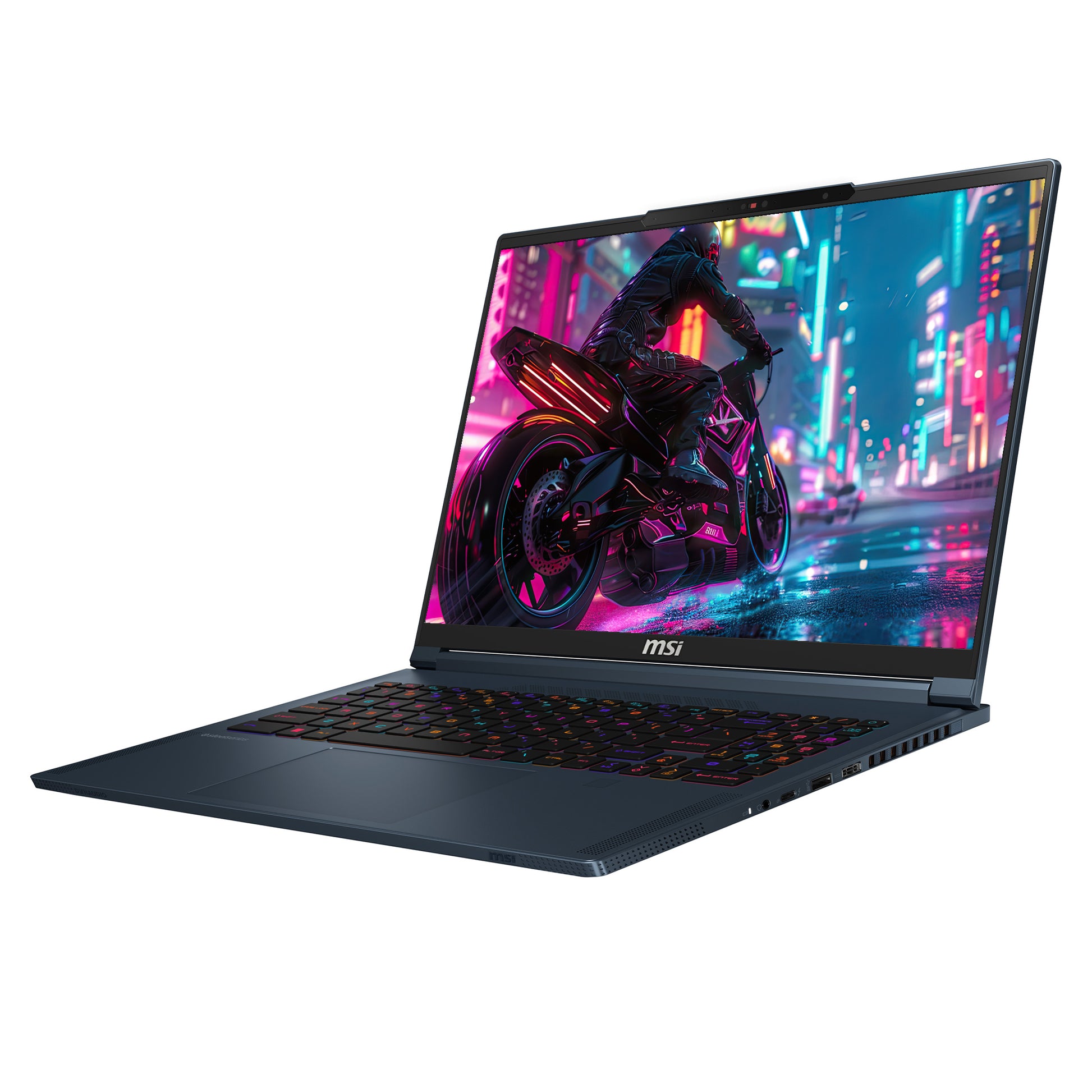 The MSI Stealth 16 AI Studio perfectly balances cutting-edge performance and refined aesthetics, making it an ideal choice for both creative professionals and gaming enthusiasts. Its slim, aluminum-alloy chassis in striking Star Blue not only exudes elegance but also ensures exceptional durability for life on the move.
